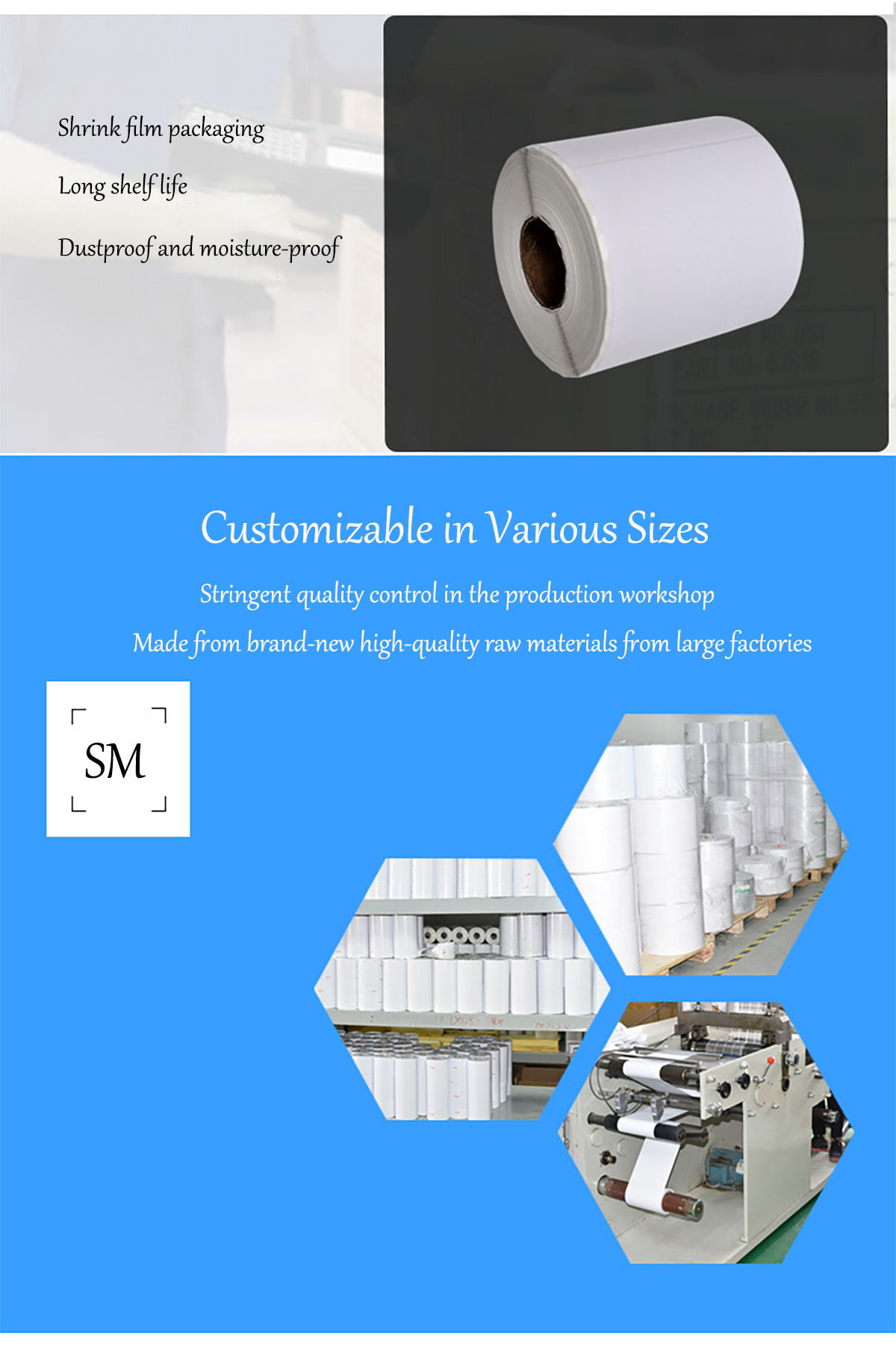 DK1201 Black-on-White Self-Adhesive Thermal Paper Label is a high-quality direct thermal label featuring a white substrate and high-contrast black print, delivering clear and durable labeling without the need for ribbons, ink, or toner. BPA-free and eco-friendly, it ensures safe usage. The label is equipped with a strong pressure-sensitive adhesive on the back, allowing it to adhere firmly to a variety of surfaces including cardboard, plastic, and glass. Widely compatible with mainstream direct thermal label printers such as the Dymo LabelWriter series, it is ideal for diverse applications—including shipping packages, office documents, warehouse inventory, retail price tags, and medical specimen labeling—making it an efficient, convenient, and reliable labeling solution.